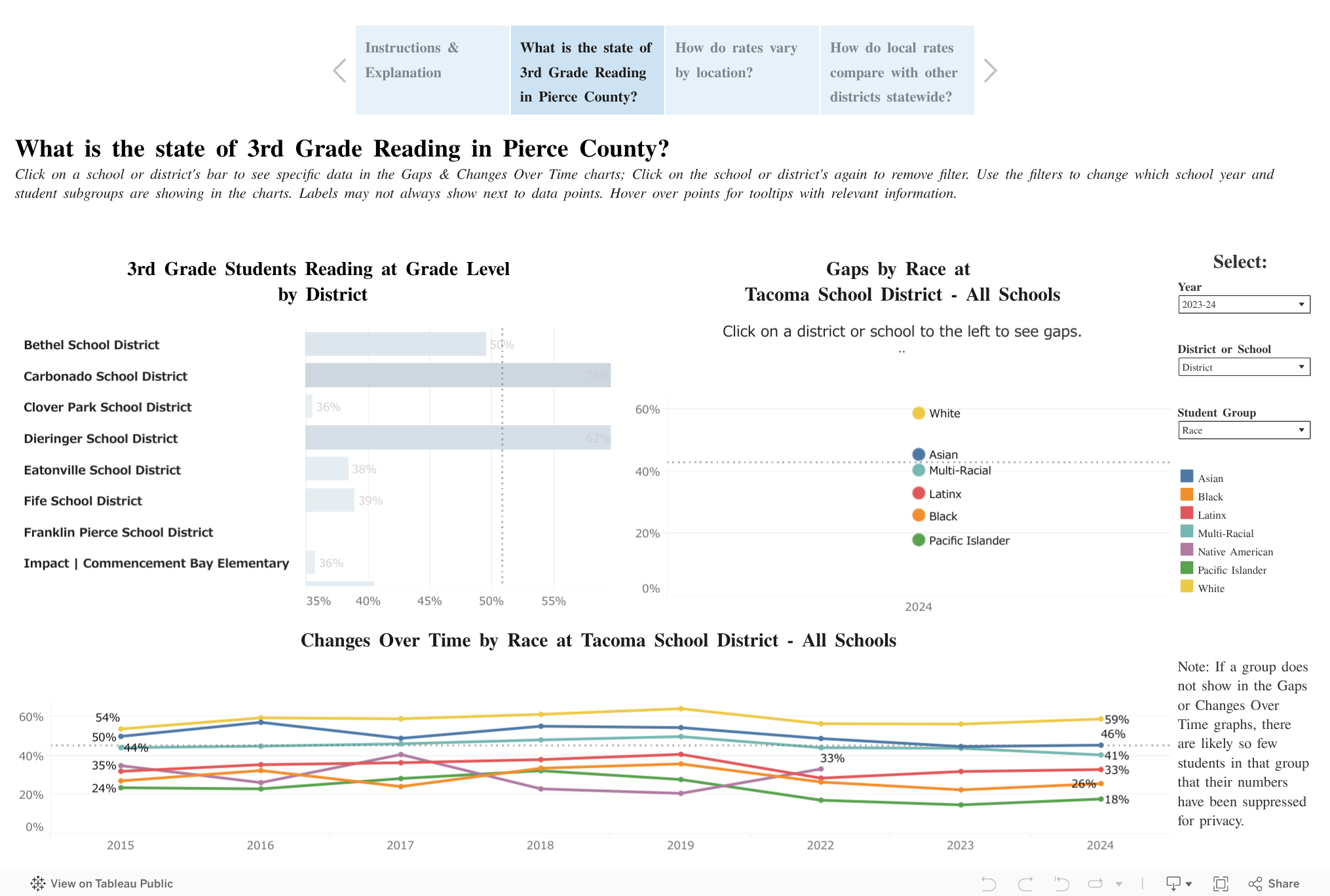 Third Grade Reading refers to the percentage of students who met the standard for Smarter Balanced Assessment Consortium (SBA) English and Language Arts (ELA).